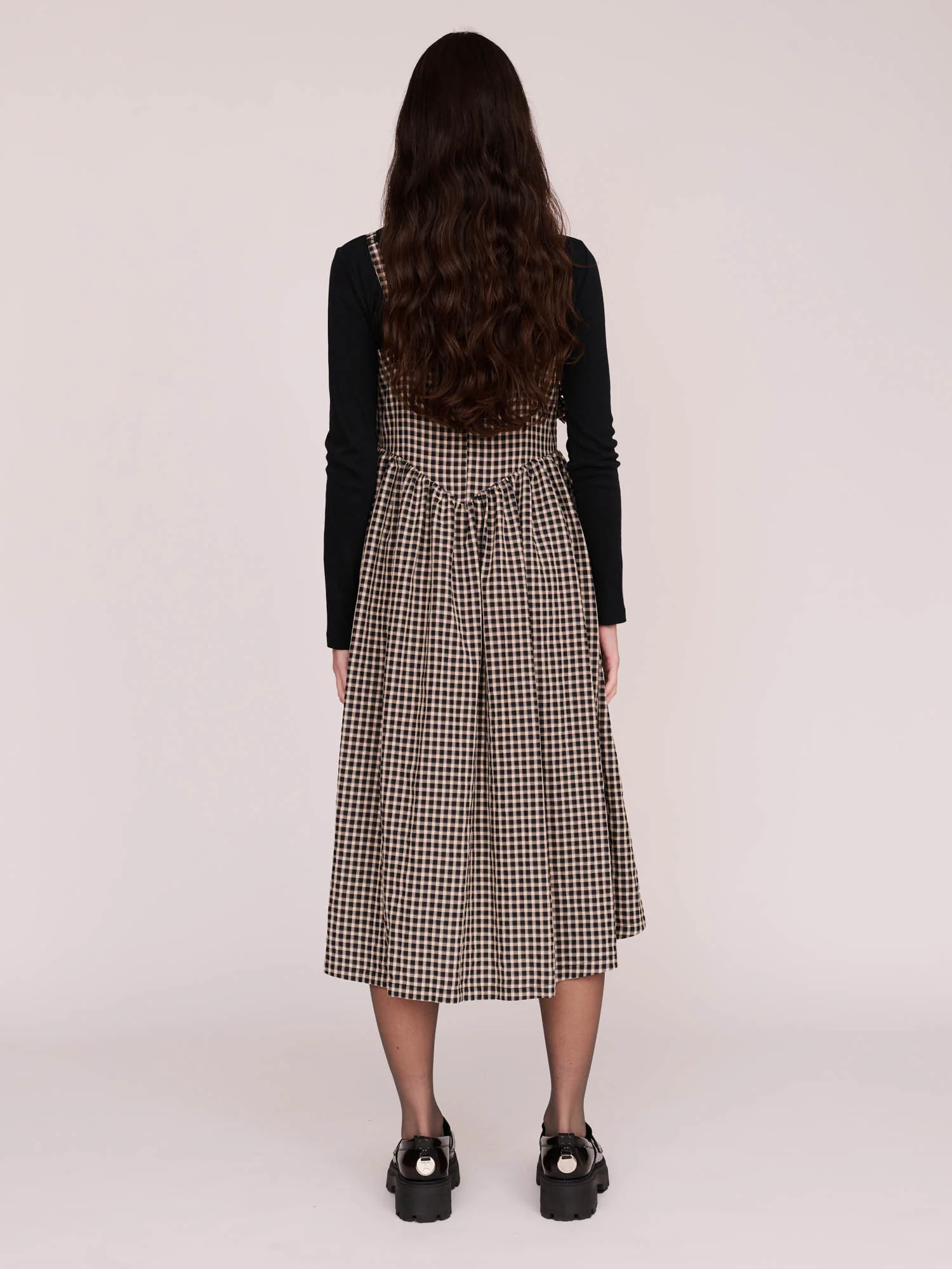 In a black and cream textured gingham, this midi dress will be the perfect piece to get you ready for the warmer days ahead. In a textured gingham, this dress has a relaxed fit with adjustable spaghetti style straps and shaped waistline that meets the full, gathered skirt. Fastenable by a concealed zip at the side seam; the star of the show are the ruffle flowers where each strap meets the chest.