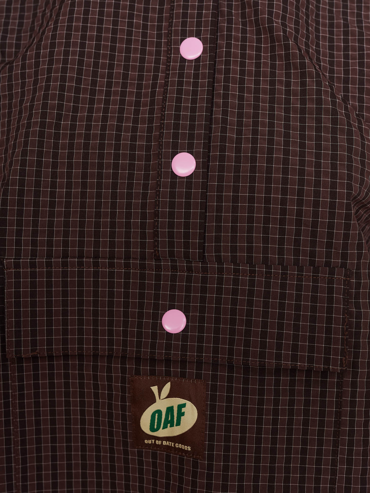 Keep your petals dry with this checked, pull over anorak. In a relaxed, boxy fit, it has a dropped shoulder with elasticated cuffs and an elasticated drawcord with pig nose toggle hem. The funnel neck fastens by contrasting pink snaps and features a zip off hood as well as front patch pocket with a snap closure, and woven label patch. In a shower resistant finish, this lightweight jacket will be perfect for having to hand on the go.