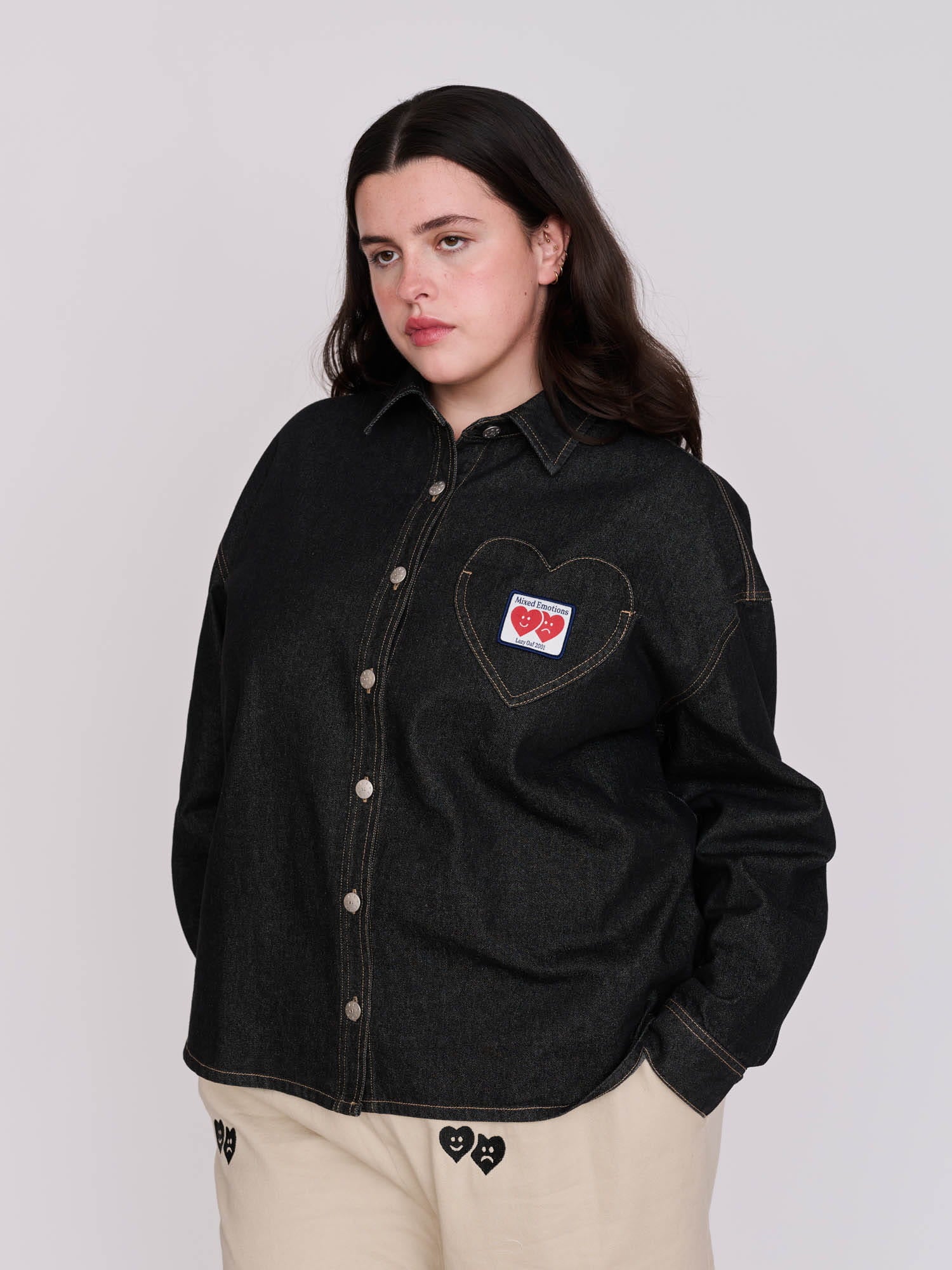 In a cotton blend, dark wash denim, this oversized shirt is one of our bestselling silhouettes so you can trust - it’ll have you falling in love. There’s a back yoke and box pleat detail as well as side slits at the hem, which give this relaxed style its effortlessly good fit. Fastenable by metal buttons, it has contrasting twin needle stitching throughout, plus the star of the show - the heart shaped chest pocket. Finished with a woven patch label, this’ll be an everyday staple before you know it.