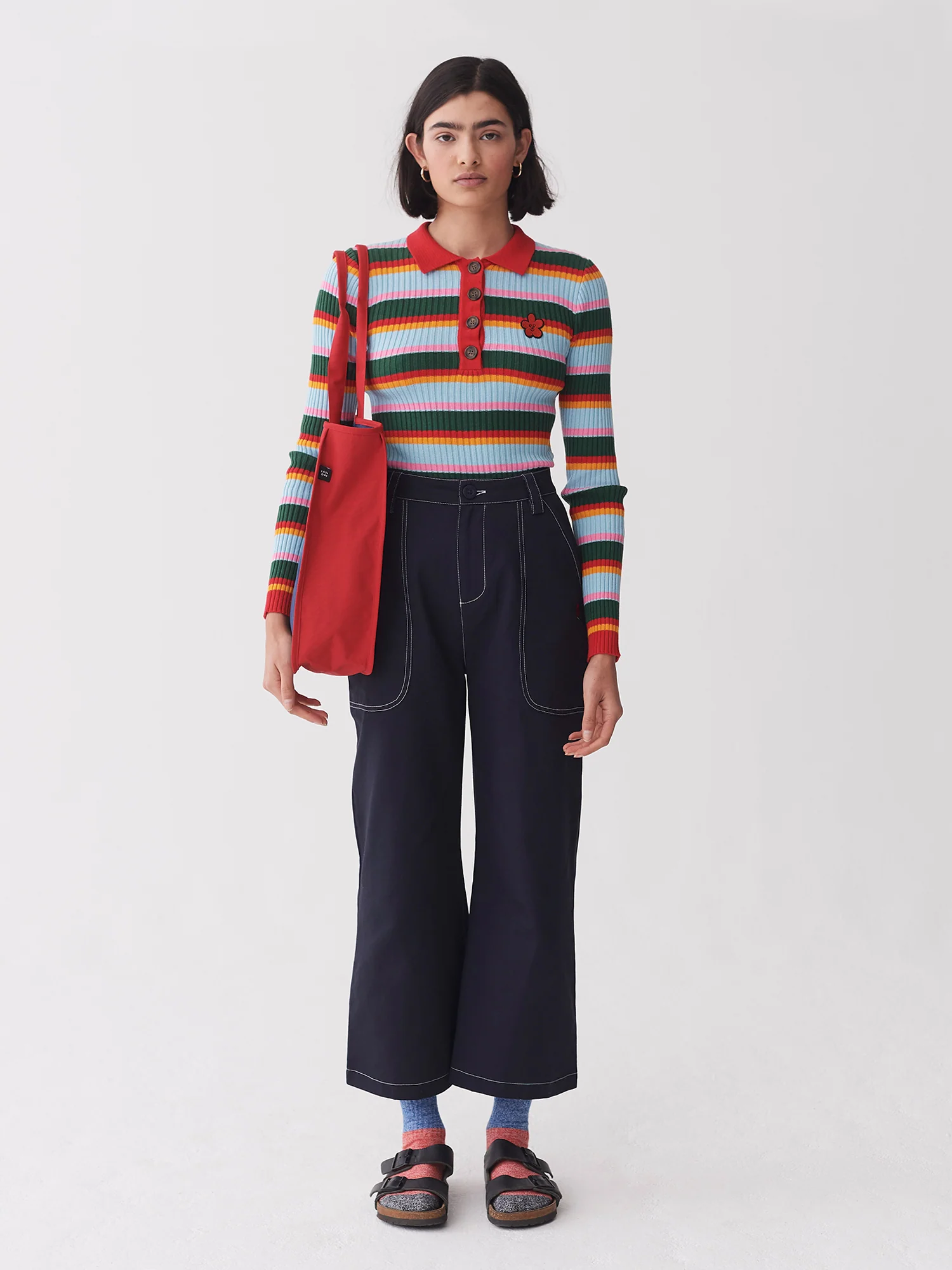 - Contrast rib neck trim in red
